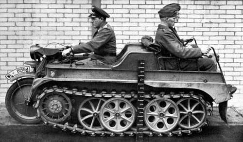 В годы войны единственным серийным гусеничным модулем для мотоцикла, который пустили в серию, был байк, что больше похож на артиллерийский тягач. Название последнего - «SdKfz 2».